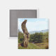 A weather beaten tree trunk stands against a cloudy sky on a ridge on one of the fells in the Peak District, Northern England, with more fell country on the horizon. An area of natural beauty with fells (larger than hills and mountainous, but not as large as mountains), rivers and sparsely populated landscape.
