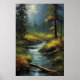 Within the ancient embrace of a verdant forest, a tempest brews in the heavens above. Dark clouds gather like ancient sentinels, casting an eerie shadow upon the lush canopy. Nature's fury ignites the sky with lightning's fiery tendrils, a primal dance amidst the towering trees, where time and nature collide.