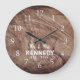 Wedding clock with a rustic weathered wood background. Personalize the farmhouse style clock with last name of the new couple for an unique wedding anniversary gift.