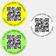 Personalise our round weatherproof QR code labels with your company name, QR code link(s), and custom text. These are professional waterproof stickers printed on 3M™ Scotchcal™ high-performance vinyl. They are scuff and tear resistant with strong adhesive backing. The dimensions are 1.5 inch diameter. Designed in bright yellow and other colours (all colours are customisable). You can customise up to three different designs on one sheet (each with a different QR code URL). Low minimum order quantity (30 labels) and no setup fee.