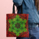 This funky mandala features festive red and green in a basket weave style. Psychedelic visuals for the modern hippie or anyone who loves groovy colours.