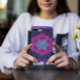 This funky mandala features pink and blue in a basket weave style. Psychedelic visuals for the modern hippie or anyone who loves groovy colours.