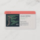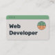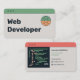 A business card for all web professionals such as webmaster, web developer, web designer, app developer, analysts, network engineer, AI engineer, data scientist, etc. There is a worldwide web globe illustration on the front and a page with some code on the back. The top looks like a browser window with a bar and control buttons. Contact information are decorated with icons!