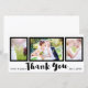 Wedding 3 Photo Picture Black Modern Thank You Card
