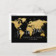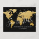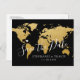 Black and gold world map save the date postcard for a travel theme wedding or destination wedding anywhere in the world... just move the heart to your location! Click CUSTOMIZE FURTHER to move the heart, change the background and text colour, change fonts, or rearrange the whole thing and create your own design using our elegant faux gold foil map. —— Perfect for tropical, beach, island, city, mountain and adventure destination wedding locations all over the world. Check our designer shop for matching invitations and day-of stationery.