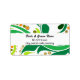 green and yellow swirl floral pattern, bride and groom wedding address labels.