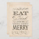 Elegant customisable invitation with the words Eat, Drink and be Very, Very, Merry. Suits anniversaries, birthdays, wine tastings, holiday parties, and many other occasions.