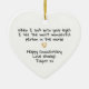 💛 Celebrate your love story with this sweet anniversary ornament. Featuring the heartfelt message “When I look into your eyes I see the most wonderful person in the world”, it’s a romantic keepsake that makes a perfect gift for your partner or spouse. Personalise it with your name or message to make it truly yours.