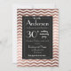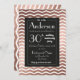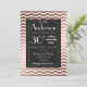 Rose gold in mdern geometric pattern, black frame in simple elegant zig zag design. Modern pink gold 30th wedding anniversary party invitation card.