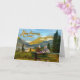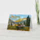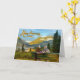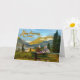 This watercolor painting by Doreen Erhardt© features a romantic scenic view of a lake surrounded by woodland pines and majestic snow capped mountains, with a loving couple sitting on a bench taking in the nature's bounty and is a perfect card to send to a couple celebrating many, many years of marriage on their wedding anniversary.