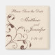 Send this save the date reminder magnet along with your wedding announcement to help your friends remember your wedding day. This wedding reminder magnet features brown swirls and curls on a cream background. You can easily customise the text from the product order page.