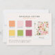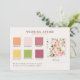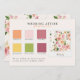 A soft and romantic wedding attire card featuring the Afterglow Garden color palette. This design includes six coordinated watercolor shades with labeled swatches and a matching floral artwork. A beautiful way to share your chosen wedding colors with your bridal party or guests. Fully customizable.