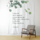 Wedding backdrop with customisable verse and watercolor eucalyptus decoration.