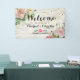 Wedding Banner Flowers & String Lights Rustic Wood