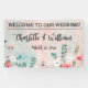 Wedding Banner Watercolor Wildflowers designed in pastel shades of pink and teal green, with text: WELCOME TO OUR WEDDING, The Bride and Groom's First Names and Wedding Date. To personalise, simply insert your details into our easy template, replacing the sample text. Be sure to view the complete Wedding Watercolor Wildflowers for matching cards and accessories.