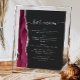 An elegant sign for your wedding bar menu. The words "bar menu" appears in silver gray handwriting calligraphy with swashes at the beginning and end, with customizable text below. A burgundy watercolor agate design trimmed with silver faux glitter decorates the left border on a dark off-black background. See our collection for matching wedding invitation suite and day-of stationery.