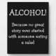 Bar Sign With Funny Quote perfect for weddings. "Alcohol, because no good story ever started with someone eating a salad." Background and text colour is customisable to fit your décor.