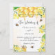 A stylish white and golden watercolored background. Decorated with bumble bees, melting honey and honeycomb with yellow florals, flowers and a honey jar. With the text: The Wedding of written with a modern hand lettered style script. Personalise and add your names.