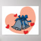 A lovely design of some wedding bells set inside in pink heart background. The wedding bells are side by side and there is also some little red hearts around them. This wedding bells design looks great on this Poster