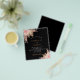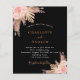 For a modern boho style wedding. A stylish black background. Decorated with rose gold and pink florals, roses and pampas grass. Personalise and add names and details.