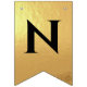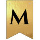 A bunting flags banner for a wedding with black and gold wedding colours, with the words "Mr. & Mrs." and the family name of the new couple and 3 hearts. The text is in black caps on faux gold foil background, the hearts and the ampersand are faux gold foil on black background.