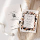 Wedding Black & Gold Floral QR Code 2 in 1 Invitation
