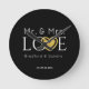 Wedding Black Gold Heart Script Name Mr. and Mrs. Round Clock