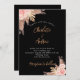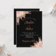 For a modern boho style wedding. A stylish black background. Decorated with rose gold and pink florals, roses and pampas grass. Personalise and add names and details.