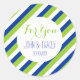 Wedding favour stickers with stripes in royal blue, green and white with customisable templates for wording of your choice.