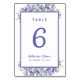 Wedding Blue Watercolor Floral Elegant Table Number