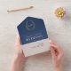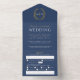 Wedding blue white gold oval leaves monogram all i in one invitation