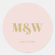 Wedding blush pink monogram custom gold initials classic round sticker
