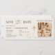Wedding boarding pass style invitation designed like a plane ticket and featuring a QR code for a modern, travel inspired celebration. Created so guests can easily scan to save wedding details, view a website, or access travel information. Ideal for destination weddings, travel themed ceremonies, and adventurous couples. Editable text and QR destination. Clean print-ready layout.