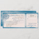 Vintage boarding pass with RSVP design for wedding invitations. blue hues design with boat wheel and swirls