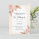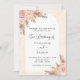 For a modern boho style wedding. An arch frame and rose gold marble print as background. Decorated with rose gold and pink florals, roses and pampas grass. Personalise and add names and details.