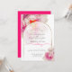Wedding INVITATION | Modern text fits nicely inside this beautiful sheer white gold edged arch frame that shows the underlying fantasy bright fuchsia scarlet peony flower edged in gold - original artwork © by WhimsicalArtwork™.