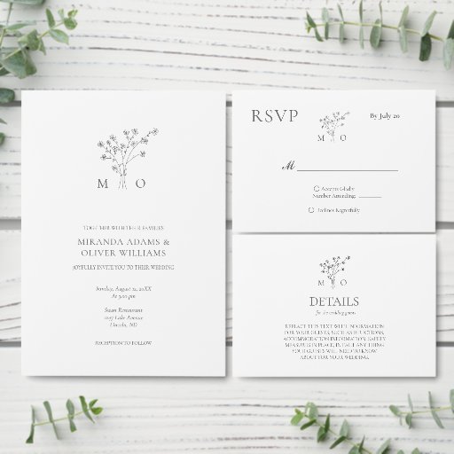 Wedding bouquet simple elegant reserved card