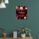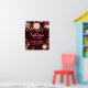 A rich burgundy welcome sign featuring large watercolor flowers and a contrasting white font on a deep burgundy background.
