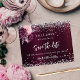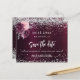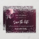 A modern and elegant Save the Date for a wedding. A deep burgundy gradient background decorated with flowers and faux silver confetti. Personalise and add a date and names. The text: Save the Date is written with a large trendy hand lettered style script.