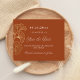 A modern and elegant Save the Date for a wedding. A burnt orange, background decorated with golden ginkgo leaves. Personalise and add a date and names. The text: Save the Date is written with a large trendy hand lettered style script.