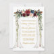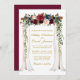 Elegant Wedding Canopy Watercolor Burgundy Marsala Floral Wedding Invitation Card includes beautiful burgundy roses, pink roses, red flowers and blue flowers. The wood wedding canopy arch includes botanical greenery. Gold Script.