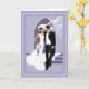 Wedding card is shown with a bride and groom graphic print.