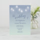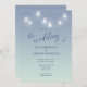 Wedding Casual Theme Soft Blue and White Invitation designed with white mason-jar lights, on a soft blue background. The text includes: The Bride and Groom's Names, Wedding Date, Time, Location and Reception Details. To personalise, simply insert your details into our easy template, replacing the sample text. Be sure to view the complete Wedding Casual Theme Soft Blue and White Collection for matching cards and accessories.