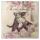A cute vintage wedding illustration of a cat bride and groom couple with pink roses all around and a customisable name template.