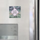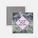 Create a unique wedding favour with this refrigerator magnet. The background of this magnet features a beautiful close-up photo of a purple, green, and yellow striped piece of fluorite mineral. A diamond in the centre allows for a solid background for the bride and groom's name and wedding date. Both the text and solid pale purple background may be personalised to suit your needs.