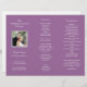 Custom, lavender wedding ceremony program template with photo holder. (Can be made in any colour). This tri-fold text setup has three sections to add personal and ceremony information, including a picture of the bride and groom. This paper can be upgraded, and will need to be folded by the customer AFTER PURCHASE.