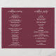 This is the foldable wedding ceremony program card, in elegance script in Burgundy colour themed.