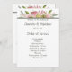 A Wedding Ceremony Program designed with a Floral Cluster of Watercolor Pink Roses with green accents. The text includes: the Bride and Grooms Names, Wedding Date and Order of Service on a white background. The reverse text includes: The Parents Names, The Bride and Groom's Wedding Attendants and the Officient of the Service. To personalise, simply insert all your details into our easy template, replacing the sample text.