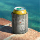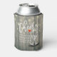 Wedding Shower Can Cooler / koozies Templates - Elegant Lettering Script, Vintage Champagne Glasses and String Lights on Rustic Wood Background.