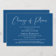 Modern and minimal wedding change of plans, postponement or cancellation announcement with a cheerful vibe in classic blue with white typography. "Change of Plans" is written in a stylish script and you can easily personalise whether the wedding has been cancelled, the date has been postponed or changed or any other details have been changed.